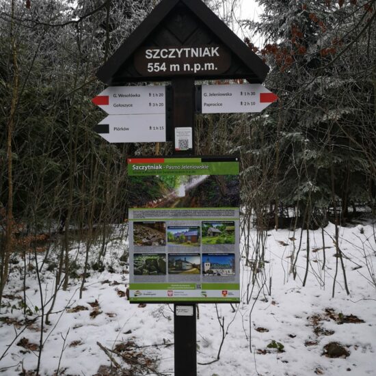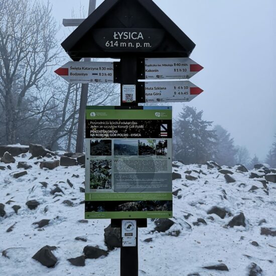 4) certyfikatem elektronicznym, uzyskiwanym po skanowaniu kodu QR umieszczonego na drogowskazie z nazwą szczytu (drogowskazy znajdują się na szczytach lub