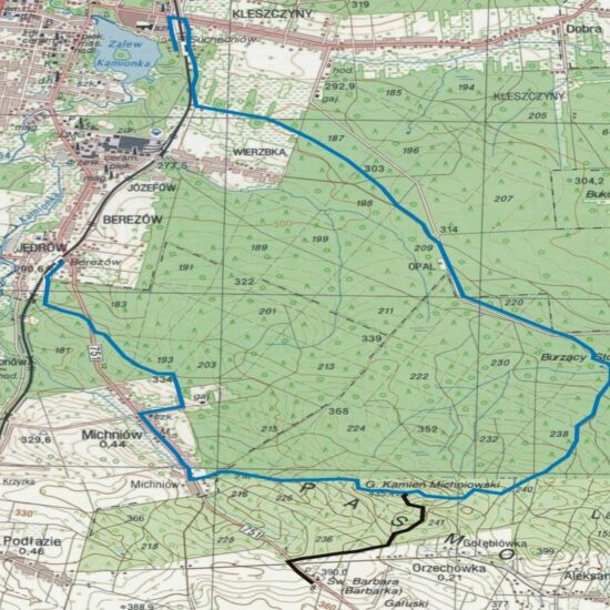 • 11,0 km Polana z zabudowaniami dawnej gajówki Opal i wiatą turystyczną.